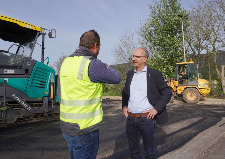 Photo: Mayor Weber during the asphalt work at the skate park in Roscheid.