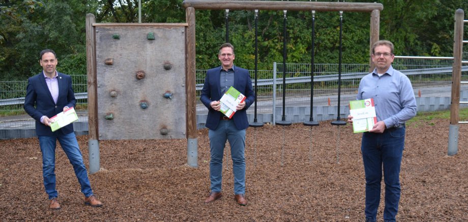 "Who is visiting us today and why do they have a big package with them?" asked the first graders at the St. Nikolaus primary school in Konz. The 72 Abc shooters each received a packet of exercise books from Westenergie at the start of school. Guido Wacht, the first full-time deputy of the Konz association of municipalities, and the head of the Trier region at Westenergie Michael Arens were visiting. Together with headmaster Alexander Kalmar, they had a pack of exercise books in their luggage for each child. Of course, everyone involved complied with the current distance and hygiene rules.