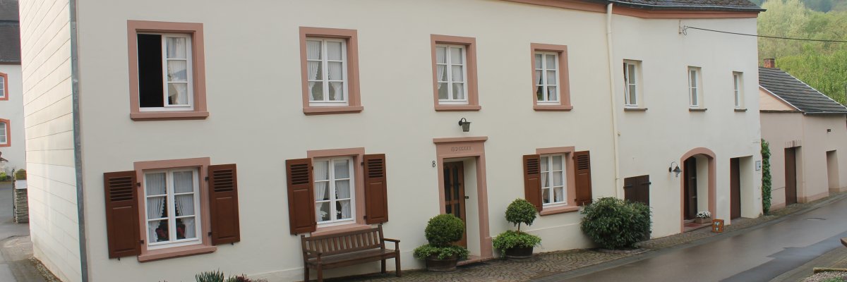 Tout d'abord, le Trierer Quereinhaus est typique de notre région. Il comprend des espaces de vie et de travail dans un bâtiment massif et allongé, principalement face à la rue. La construction est à 2 étages, le toit à pignon a une pente de toit de 35 à 50 degrés, la façade est en plâtre.