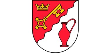 "Du rouge à l'argent divisé en diagonale à gauche par une coupe ondulée, au-dessus d'une clé d'or tournée en diagonale à gauche, surmontée d'une couronne, au-dessous d'une cruche romaine rouge."