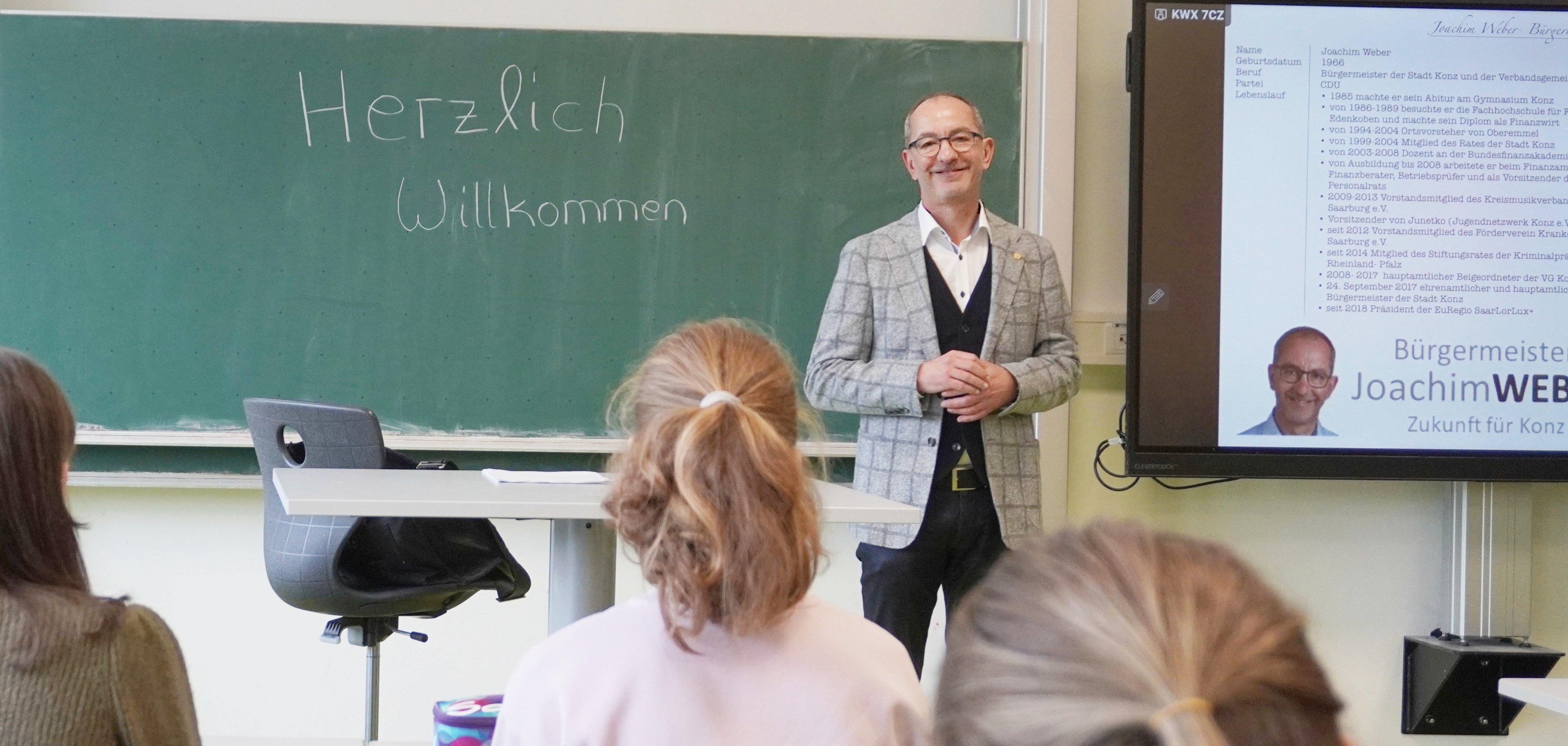 18-01-2023 Burgemeester bezoekt Konzer-schoolklas in de klas sociale studies18.01.2023Joachim Weber beantwoordt vragen over het onderwerp "Hoe werkt politiek in de gemeenschap?"Lees verder