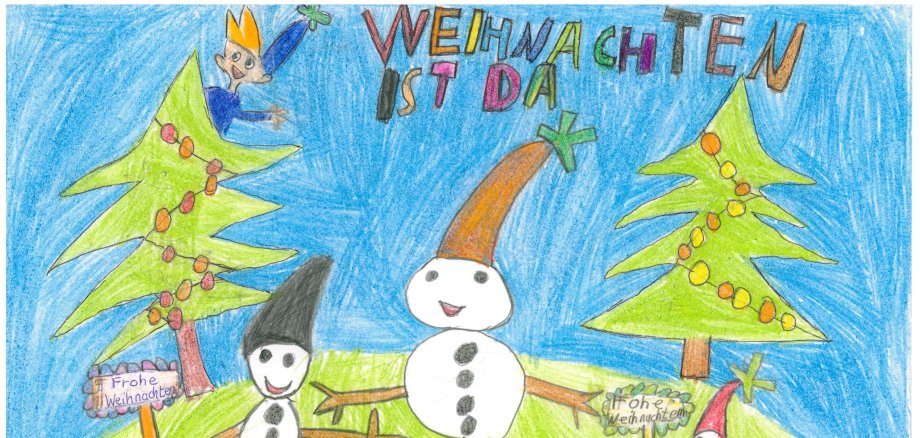 Красочно украшенные елки и три снеговика. Этот мотив украшает рождественскую открытку этого года от мэра Йоахима Вебера. Его нарисовала Марлен Райх, ученица четвертого класса начальной школы Святого Николая в Конце.
