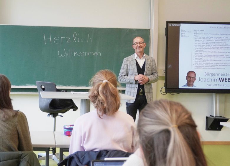Як працює місцева демократія? А як працює міська адміністрація? Ці та подібні питання зараз є предметом навчальної програми з суспільствознавства для дев'ятого класу середньої школи в Конці. І хто краще відповість на запитання, як не мер міста та громади. Тому Йоахім Вебер відвідав класний урок. Студенти з перших вуст дізналися про можливості місцевої політики та про те, де вони досягають своїх меж.