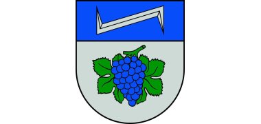 На гербі зображено під блакитною головою щита, у ній — срібляста лівоскоса вовча палиця, у сріблі — блакитна грона винограду з двома зеленими листками.